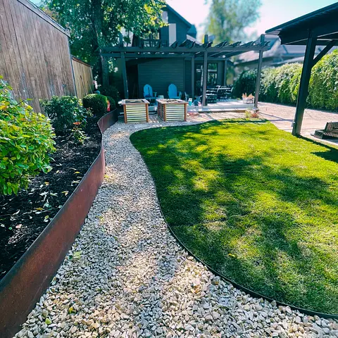 "Sassy Grass is the BEST Landscaping hands down! My before picture was taken a few months before they came as I forgot to get a before picture that day, so you can only imagine how much worse it was when they came. The 3 after pictures are the AMAZING work they did! We wanted something simple we could add to over time. The yard also needed to be graded as it was sloping towards the house and it needed to slope the other way. They did everything and more! It's seriously more beautiful than I could have ever imagined. I haven't been able to use my backyard in the 8 years we have lived here, and now I just can't believe I actually have one. Ashley was EXCELLENT at communicating with us, the job was done quickly, but with still absolute perfection! Everyone they had working on our yard was so friendly, nice, and professional. If you are looking for any landscaping, use Sassy Grass, you will absolutely not regret it! I seriously wish I had more projects so I could hire them again and again, I'm sure I will find some eventually. They also did a clean up on our front yard, which is all xeriscaped but had become very weedy and messy, and it's back to being absolutely beautiful. They cleaned it up in a way that you would do yourself, they didn't skip any weed or stray grass or you name it. They treated my yard as if it was their own and wanted it to be beautiful, and they more than succeeded!"